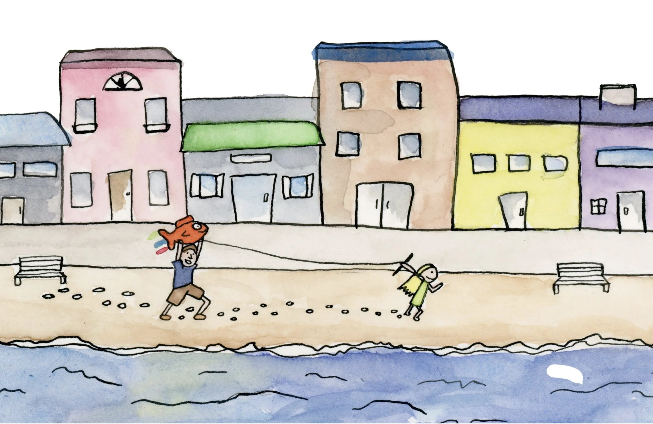 CARRIED AWAY is a delightful true story about a girl who experiences her first time flying (literally!) a kite on the beach. The actual event happened on Rehoboth Beach, Delaware in 1982.